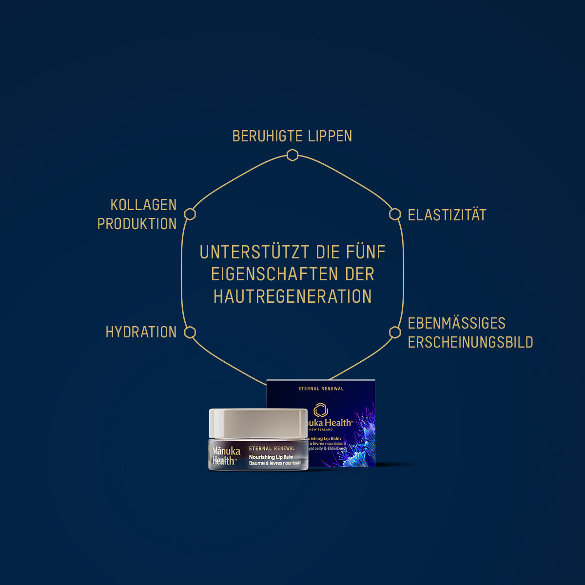 Ingrédients (INCI) : huile d'Olea Europaea (huile d'olive), Cera Alba (cire d'abeille), beurre de Butyrospermum Parkii (karité), extrait de fruit de Sambucus Nigra (sureau), Aqua (eau), glycérine, Propolis Cera (extrait de propolis), Mel (miel) *, Tocophérol (vitamine E), Panthénol (vitamine B5), Fragaria Vesca Fruit (fraise) Fruit Extract, Gelée royale. *MGO 800+ Mānuka Honey